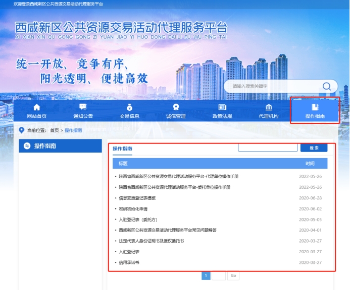 答:在网站首页“操作指南”栏目中查找“陕西省西咸新区公共资源交易代理活动服务平台-代理单位操作手册”查看。