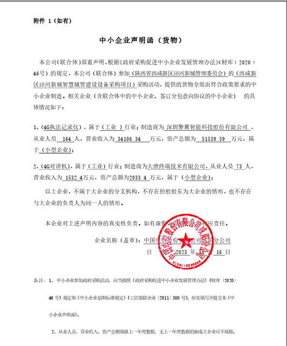 合同包1(西咸新区泾河新城智慧城管建设设备采购项目):