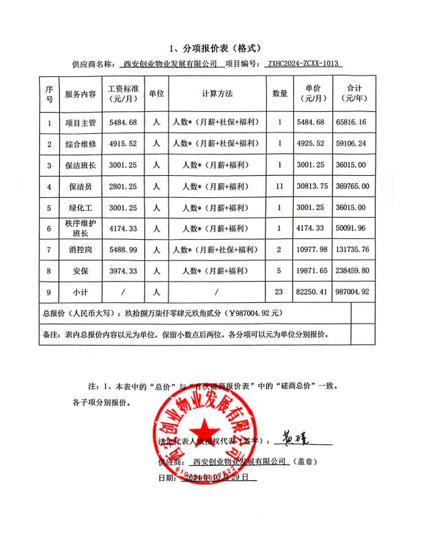 | 1 | 其他服务 | 物业管理服务 | 响应采购要求 | 响应采购要求 | 一年 | 响应采购要求 | 986,800.00 |
