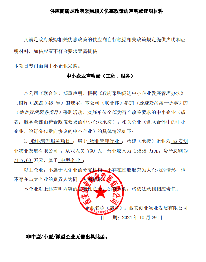 服务类(西安创业物业发展有限公司)
