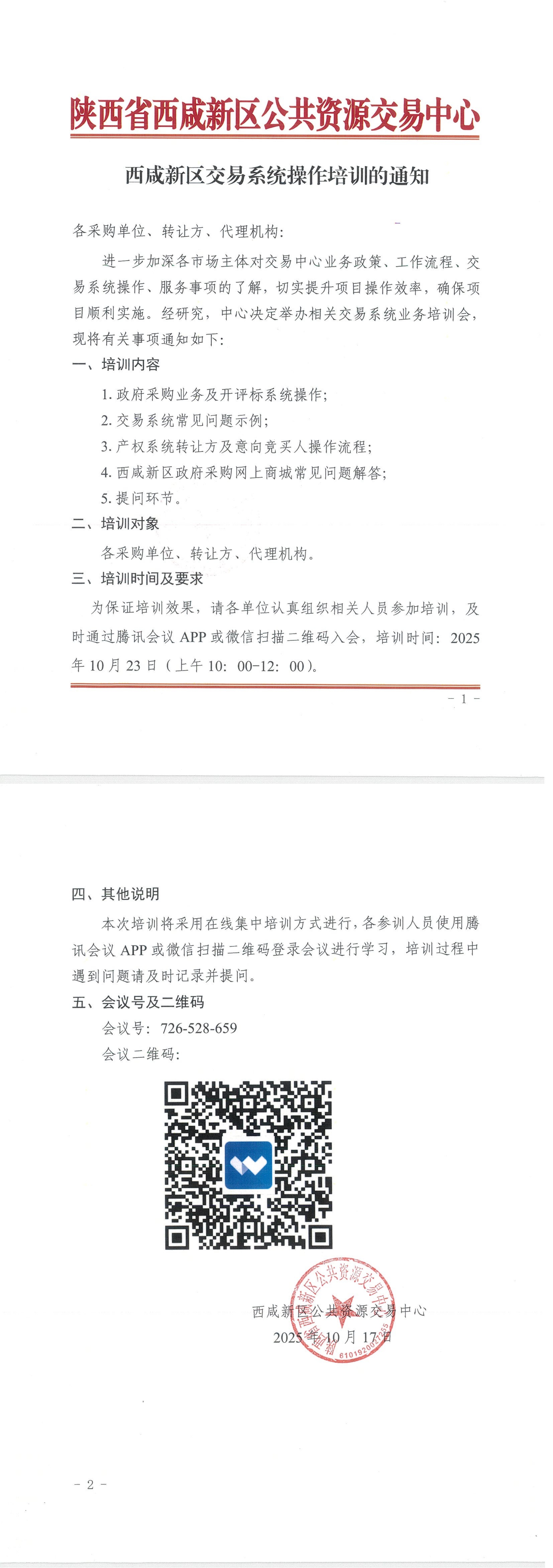 西咸新区交易系统操作培训的通知