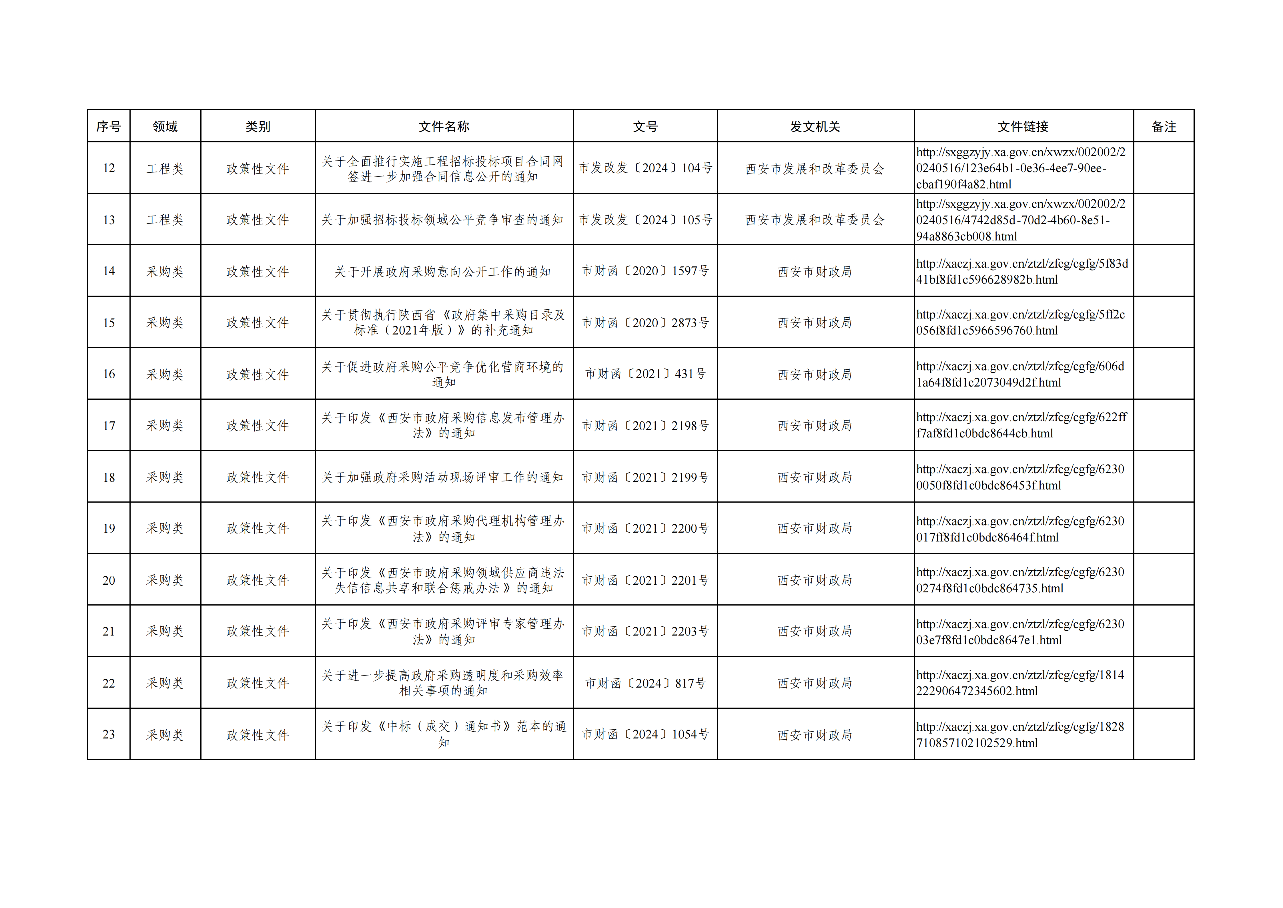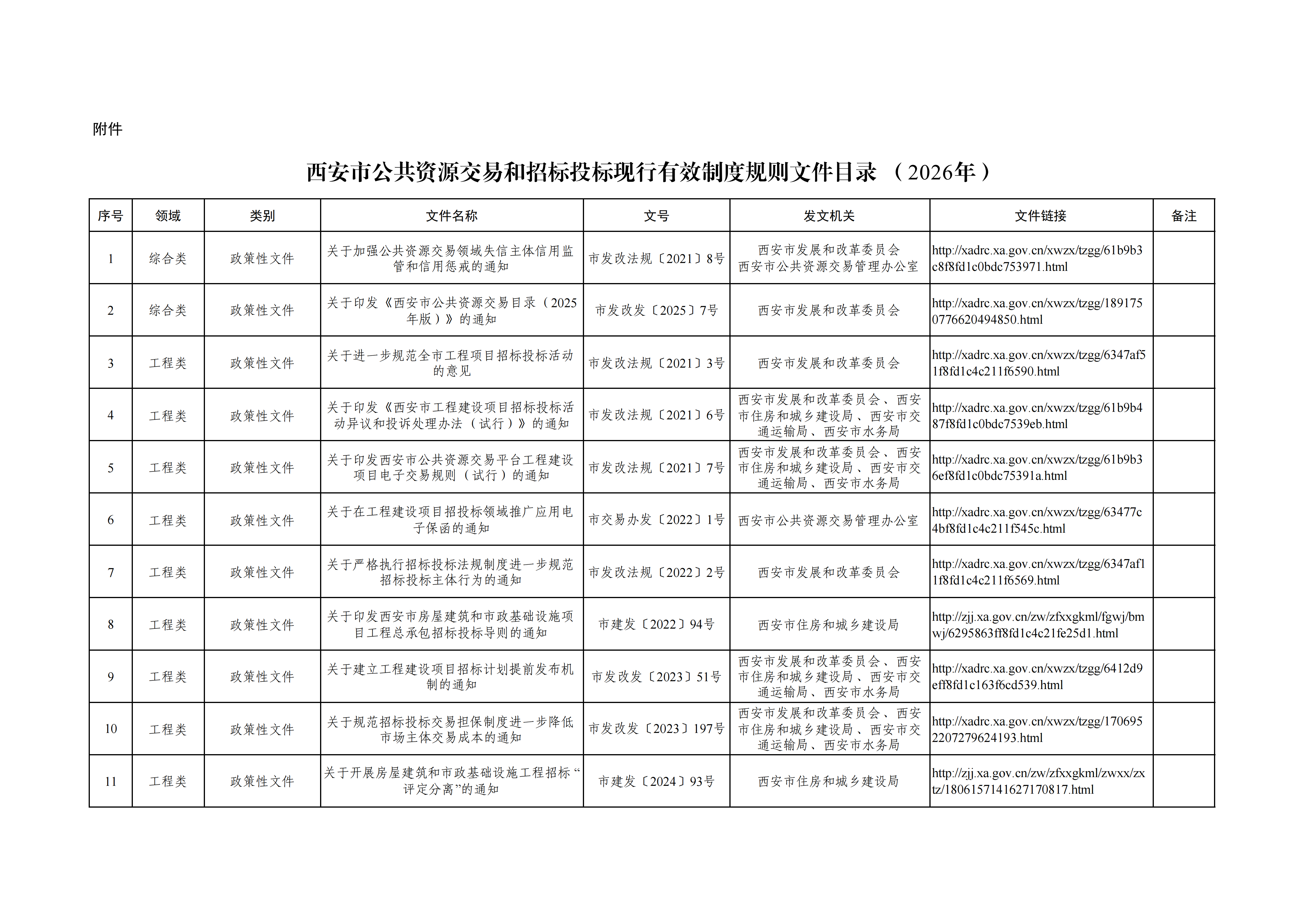 西安市公共资源交易和招标投标现行有效制度规则文件目录(2026年)